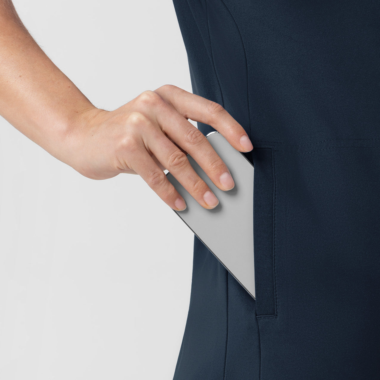 - One chest pocket with pen slot, two side entry pockets