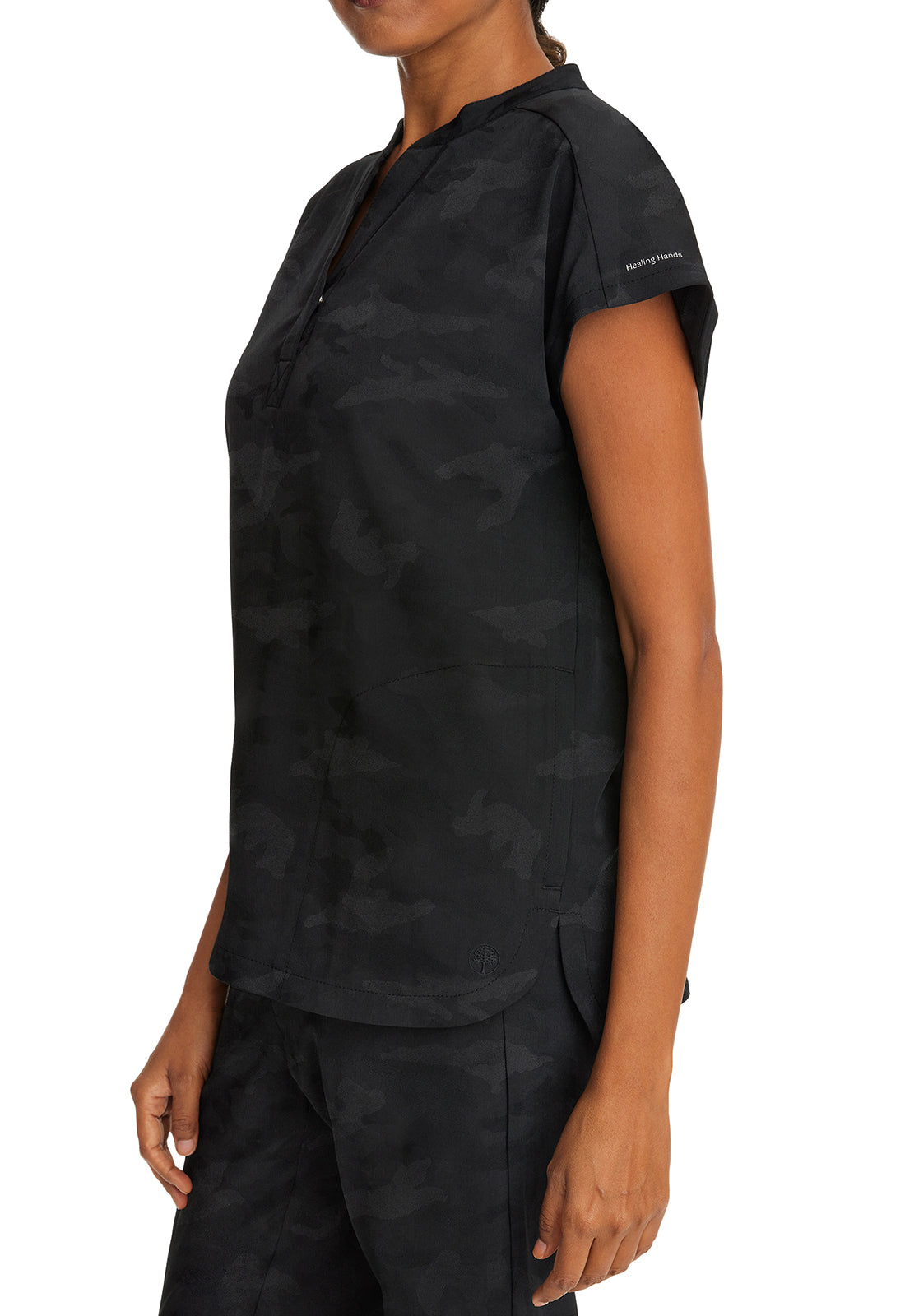 Purple Label 2352 Women's Journey Camo Scrub Top Black
