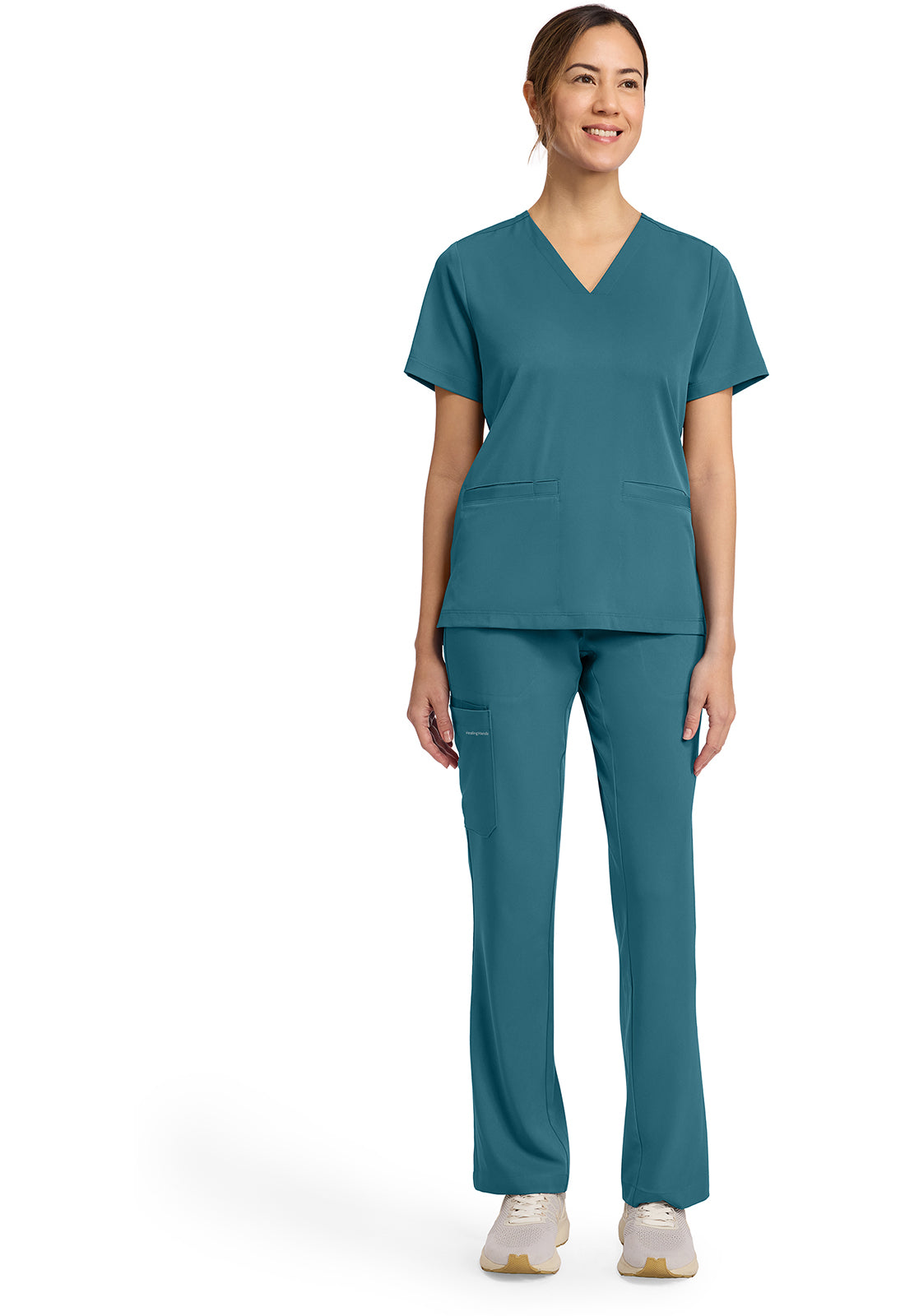 Stretch your scrub style to include this comfy new top. With ultra-flexible fabric fit for all-day movement, functional features like a phone pocket make it a modern must-have.