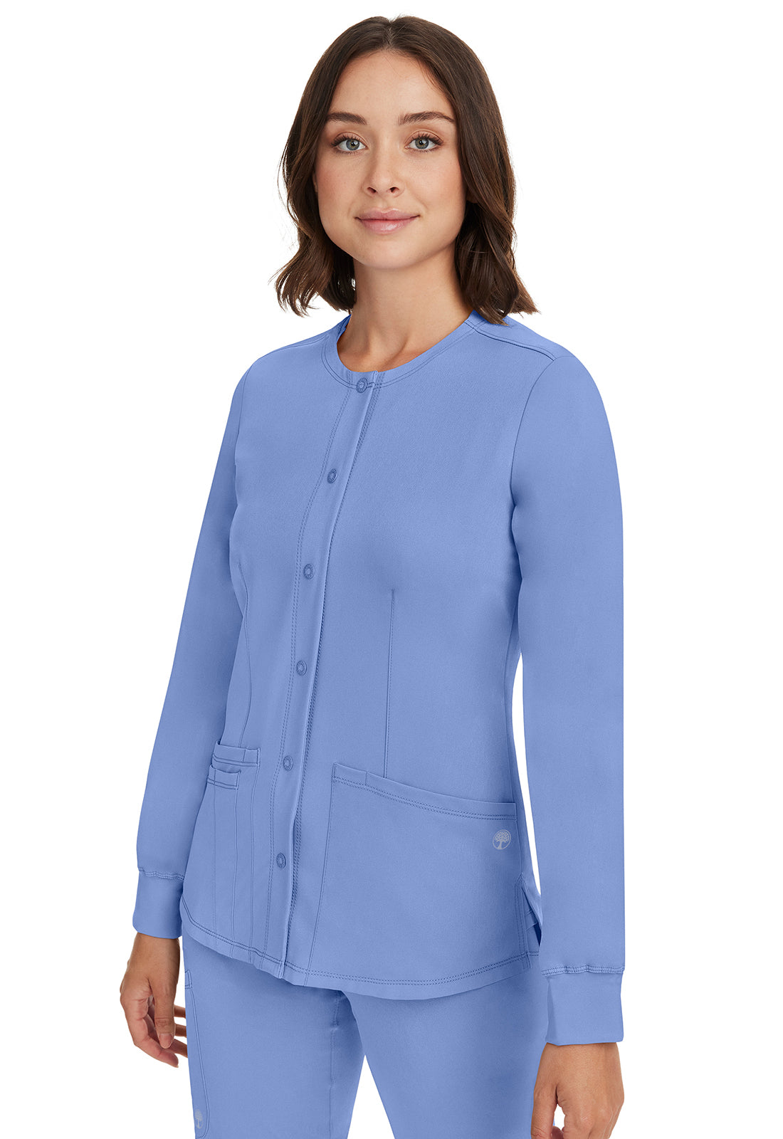 MEGAN JACKET-Round Neck Snap Button Front Jacket with 4 Pockets & 1 Media Pocket | The Megan Jacket features four pockets, including a mesh cell phone pocket, a scissor pocket, and dedicated space for your pen.
