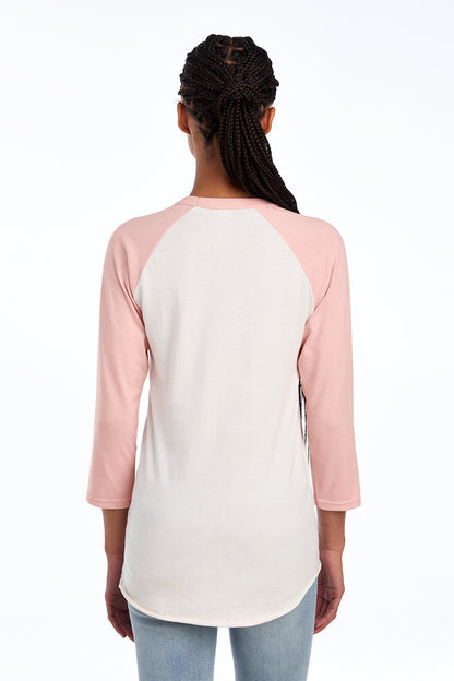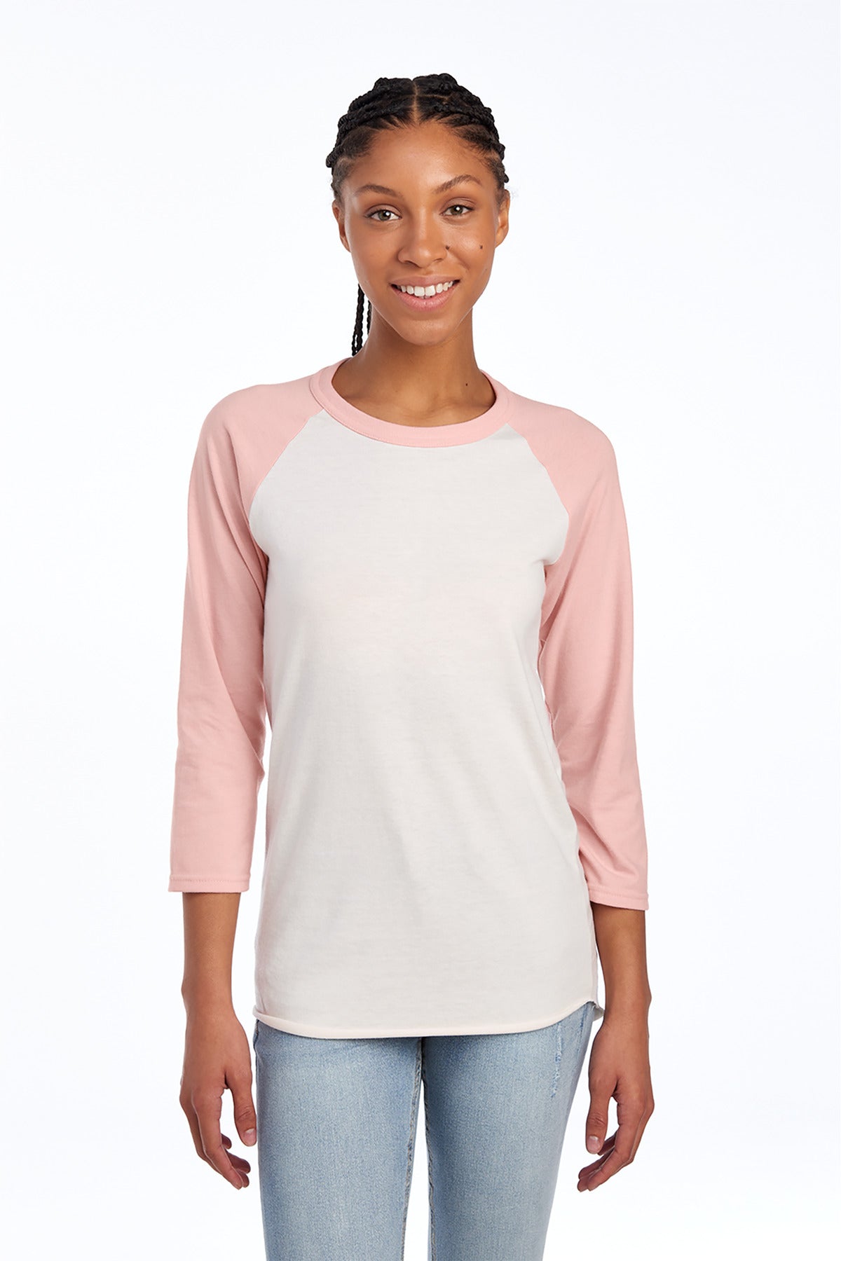 Jerzees Unisex Premium Blend Combed Ring Spun 3/4-Sleeve Raglan 560R Sweet Cream Heather/ Blush Pink