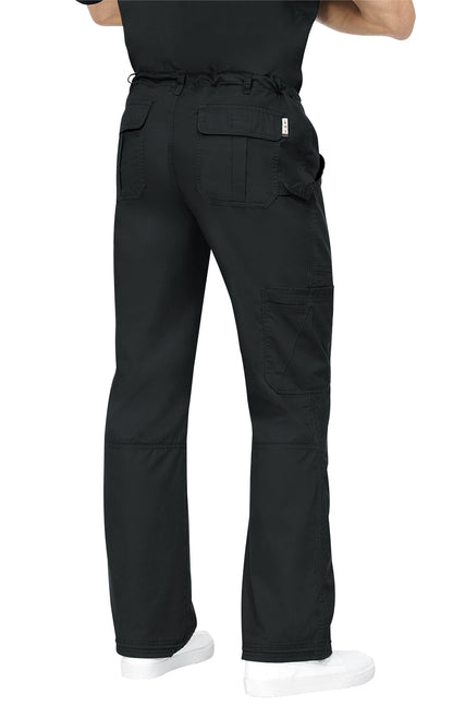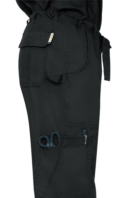Built for workdays that never quit, the 601 James Scrub Pants by Koi Classics in Black are a uniform essential. Key details include elastic waistband with silicon piping to keep shirts tucked in, five deep pockets, adjustable toggle hem, 55% cotton, 45% polyester soft twill, and koi classics james men's 6-pocket cargo scrub pants.