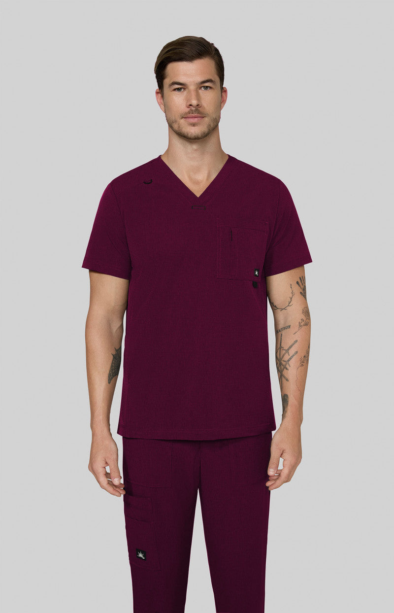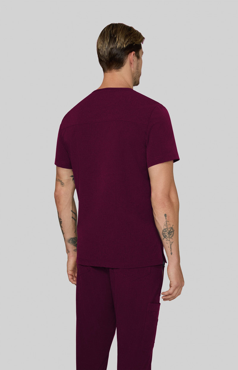 With breathable fabric and smart features, the 674 Caldwell Scrub Top by Koi Solis in Wine keeps you going strong.