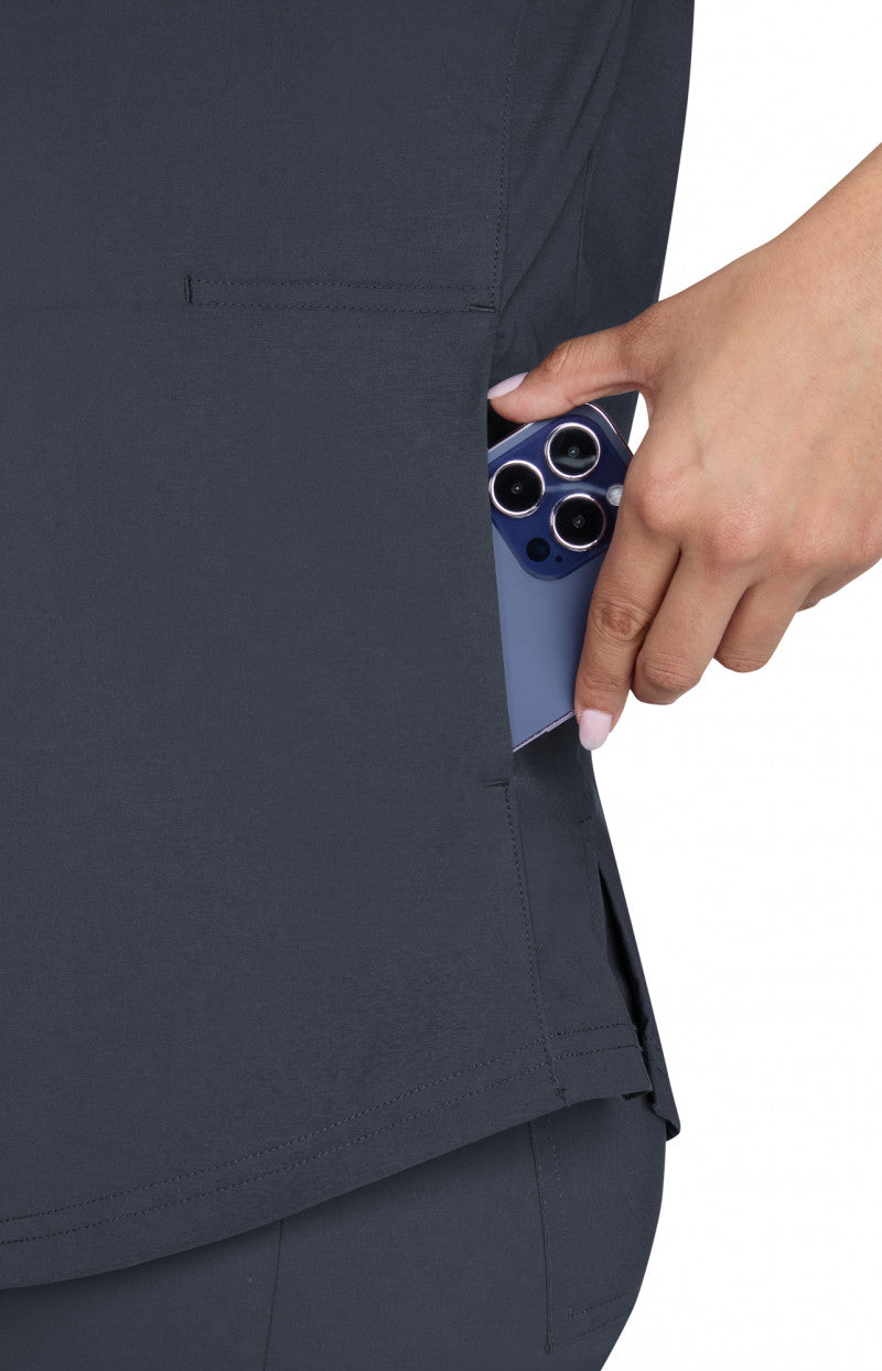 The 1137 Kenley Scrub Top by Koi Basics, shown here in Charcoal, offers comfort with a modern professional fit.
