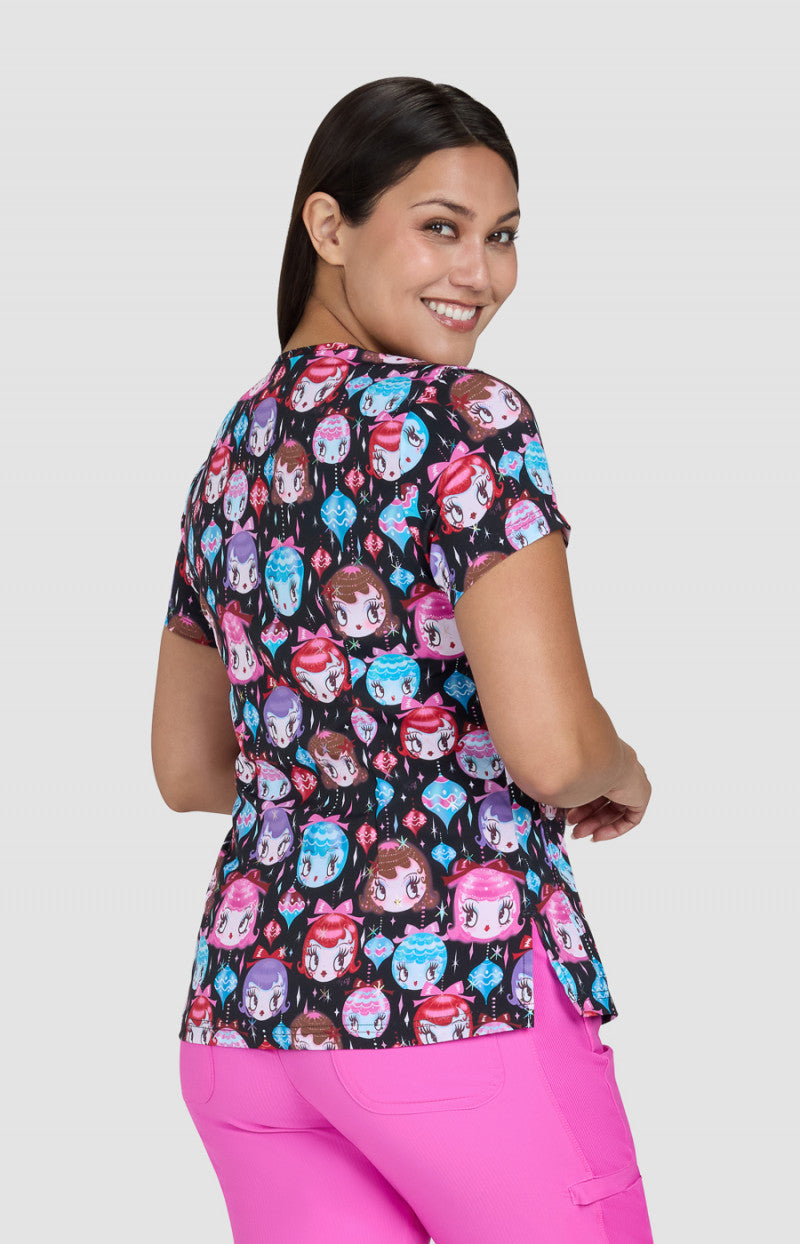 In Dolly Ornaments, the 384PRA Leslie Scrub Top by Koi Basics blends flexibility and function for busy shifts.