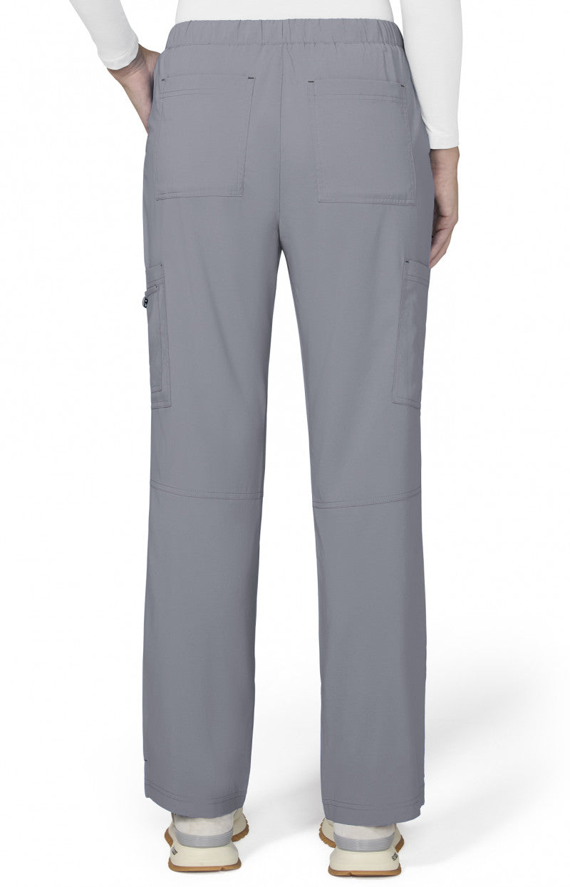 In Platinum Grey, the 731 Holly Scrub Pants by Koi Basics combine flexibility and dependable comfort. Key details include low-rise waist with elastic waistband and drawstring tie, contrast print facing, lightweight, moisture-wicking fabric, two front pockets, and four side pockets, including hidden cell phone pocket.