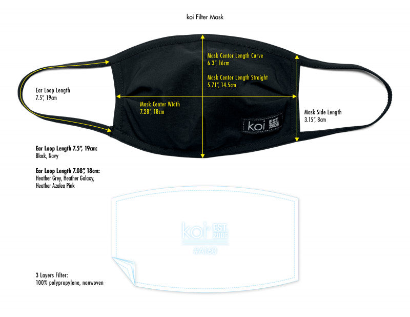 In Black, the A159 Fashion Mask 1-pc Scrub Top by Koi Classics blends flexibility and function for busy shifts. Key details include features outer fabric layer, 100% cotton liner and replaceable filter, wicks away moisture, replaceable pm2.5 activated filter offers multi-layer filtering, universal size fits most adults, and shell/binding fabric: 95% polyester, 5% spandex, lining fabric: 100% cotton jersey.