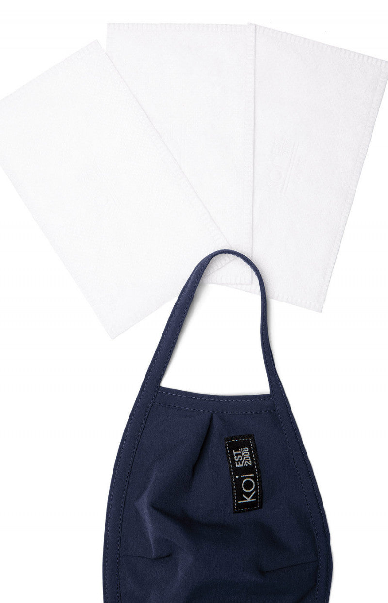 In Navy, the A159 Fashion Mask 1-pc Scrub Top by Koi Classics blends flexibility and function for busy shifts. Key details include features outer fabric layer, 100% cotton liner and replaceable filter, wicks away moisture, replaceable pm2.5 activated filter offers multi-layer filtering, universal size fits most adults, and shell/binding fabric: 95% polyester, 5% spandex, lining fabric: 100% cotton jersey.