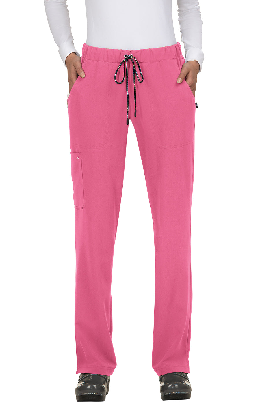The 739 Everyday Hero Scrub Pants by Koi Next Gen in Rose balance sleek style with everyday performance. Key details include drawstring waistband, mid-rise waist, 2 front pockets, 1 cargo pocket, 2 back pockets, straight leg, and signature stripe tab.