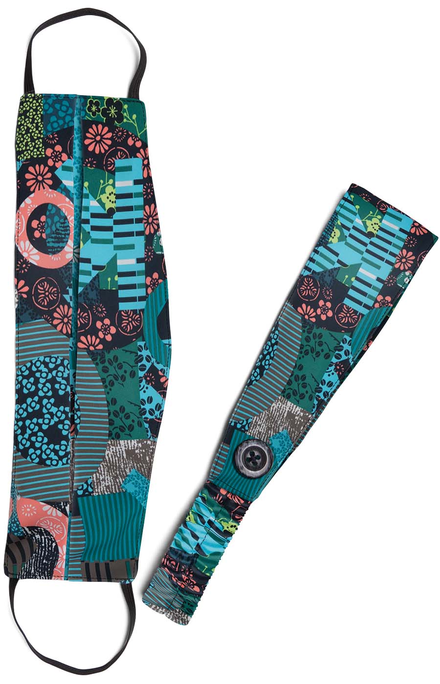 In U, the A162 Fashion Mask + Headband Set Crazy 4 U Scrub Top by Koi Next Gen blends flexibility and function for busy shifts. Key details include includes matching print headband and fashion mask, ultra soft, breathable fabric, mask can be worn separately or connected to a button on the headband, washable and reusable, and universal size fits most adults.