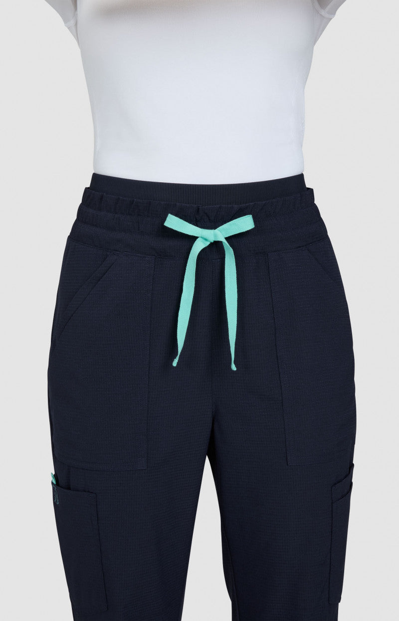 Designed for healthcare pros, the 785 Freda Wide Leg Scrub Top by Koi Solis in Navy combines practicality with style. Key details include elastic waistband with contrast drawcord, 6 pockets, adjustrable cinch at hem, looser fit, and wide leg.