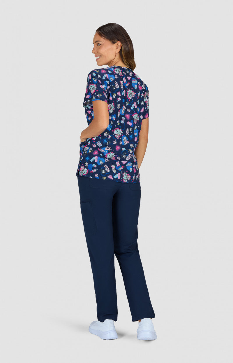 Stay stylish and confident in the 384TKD Leslie Scrub Top by Koi tokidoki in Check Up, made for everyday wear. Key details include athletic-inspired, breathable mesh, sporty v-neck styling, designed to keep you cool and dry, two front pockets, and side slits.