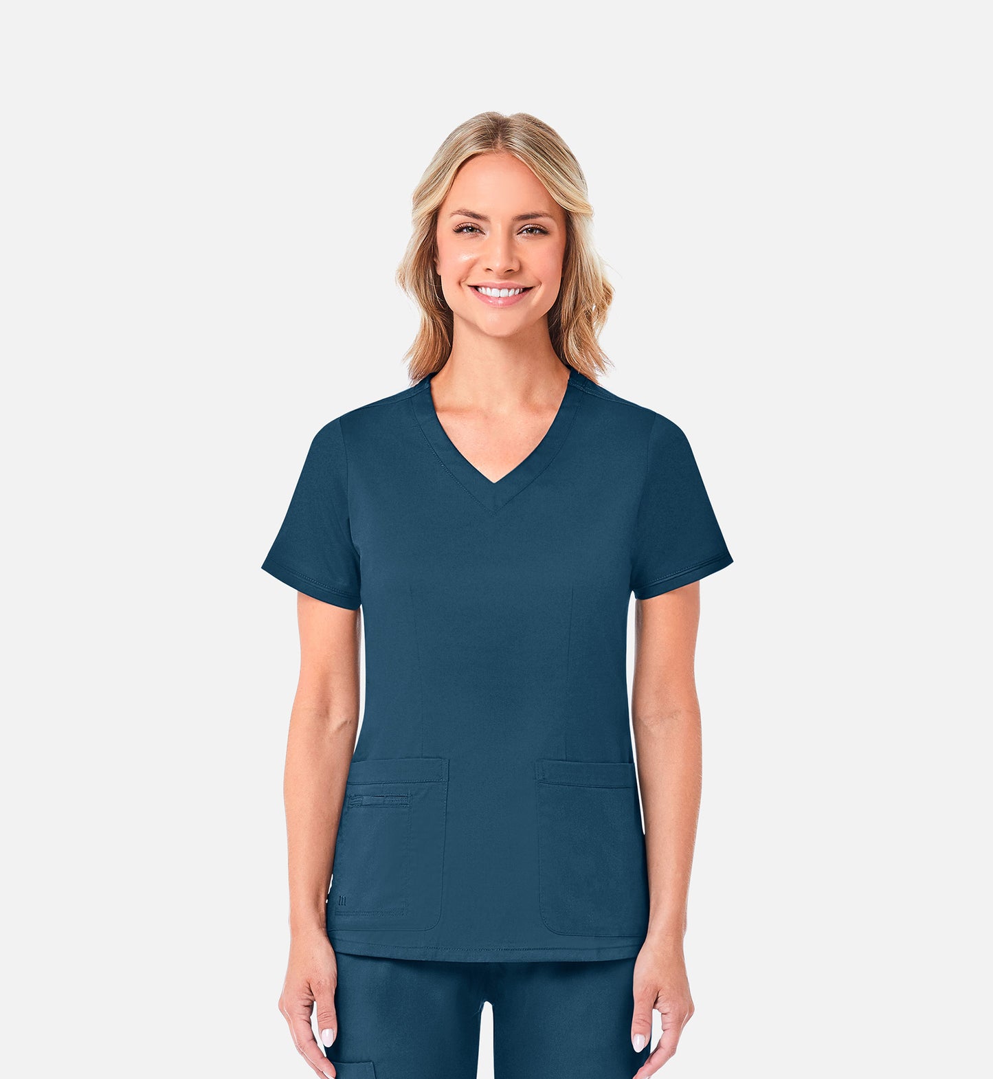 Blossom 1802 Curved V-Neck Top Caribbean Blue