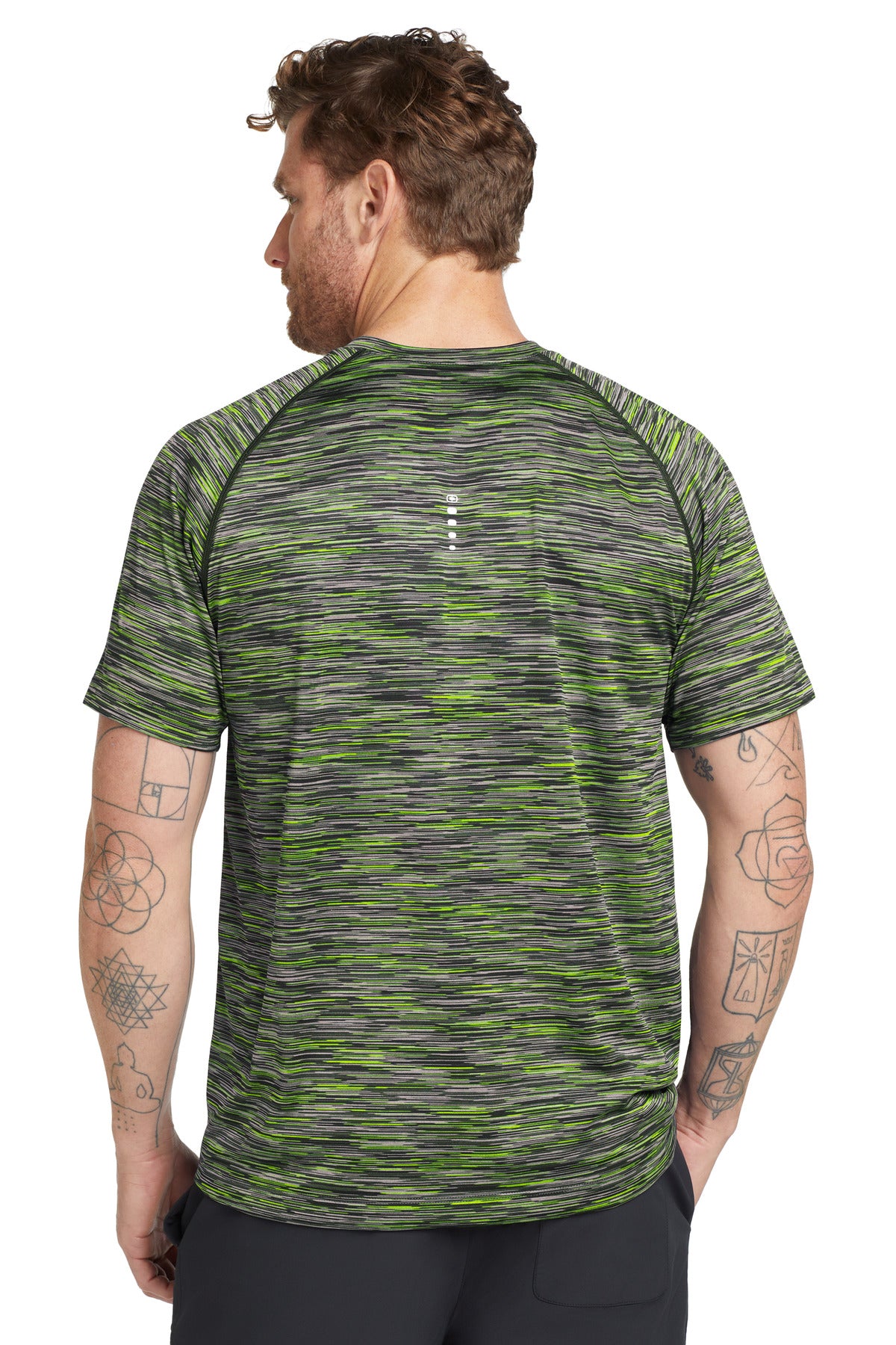 STAY-COOL WICKINGULTRABREATHABLEFLATLOCK SEAMS FOR COMFORTREFLECTIVE DETAILS 4.4-ounce 100% poly jersey with stay-cool wicking technology OGIO heat transfer label for tag-free comfort Raglan sleeves with contrast flatlock seams Contrast flatlock side seams Reflective O heat transfer on left sleeve Reflective stacked O heat transfers at center back Reflective O heat transfer at front left hem
